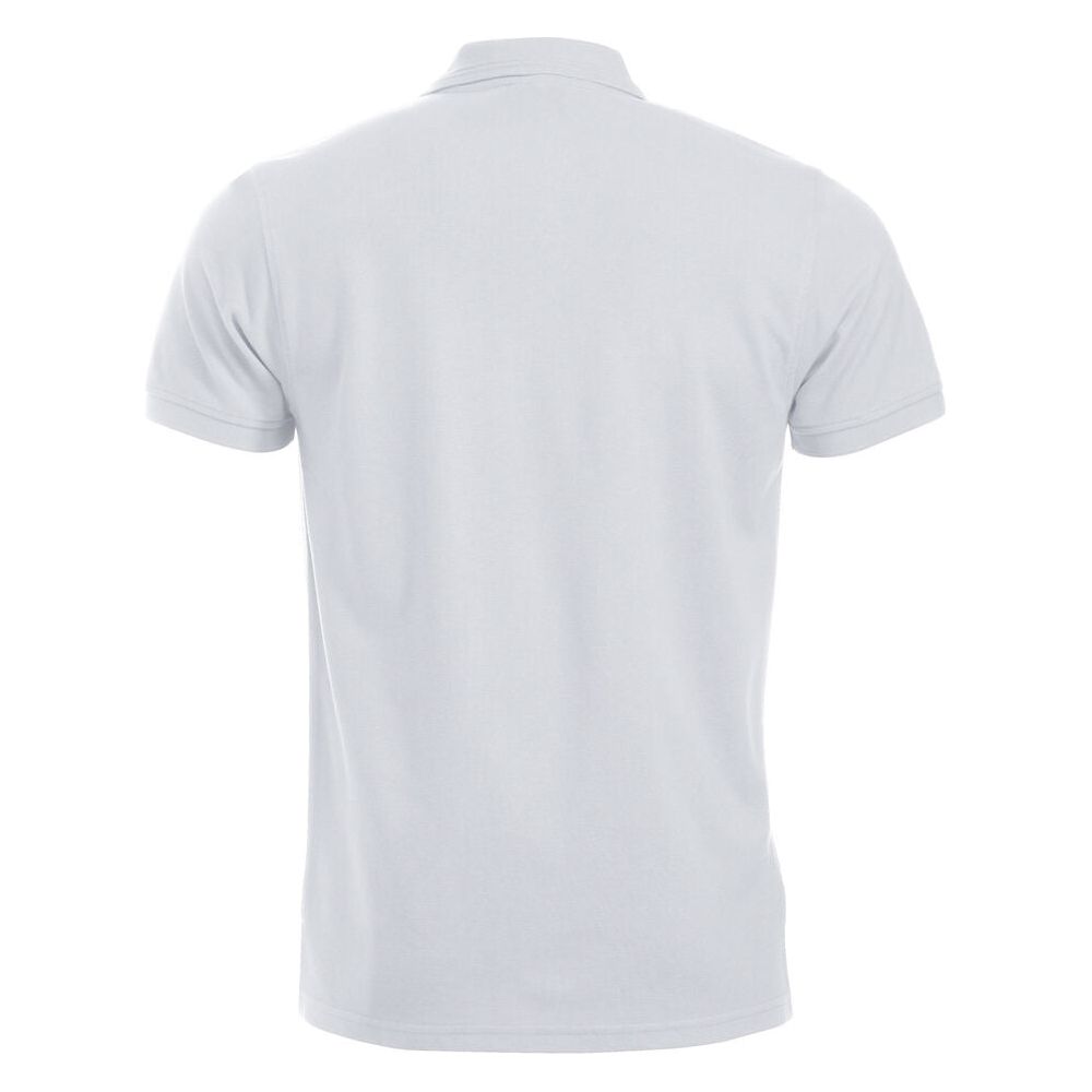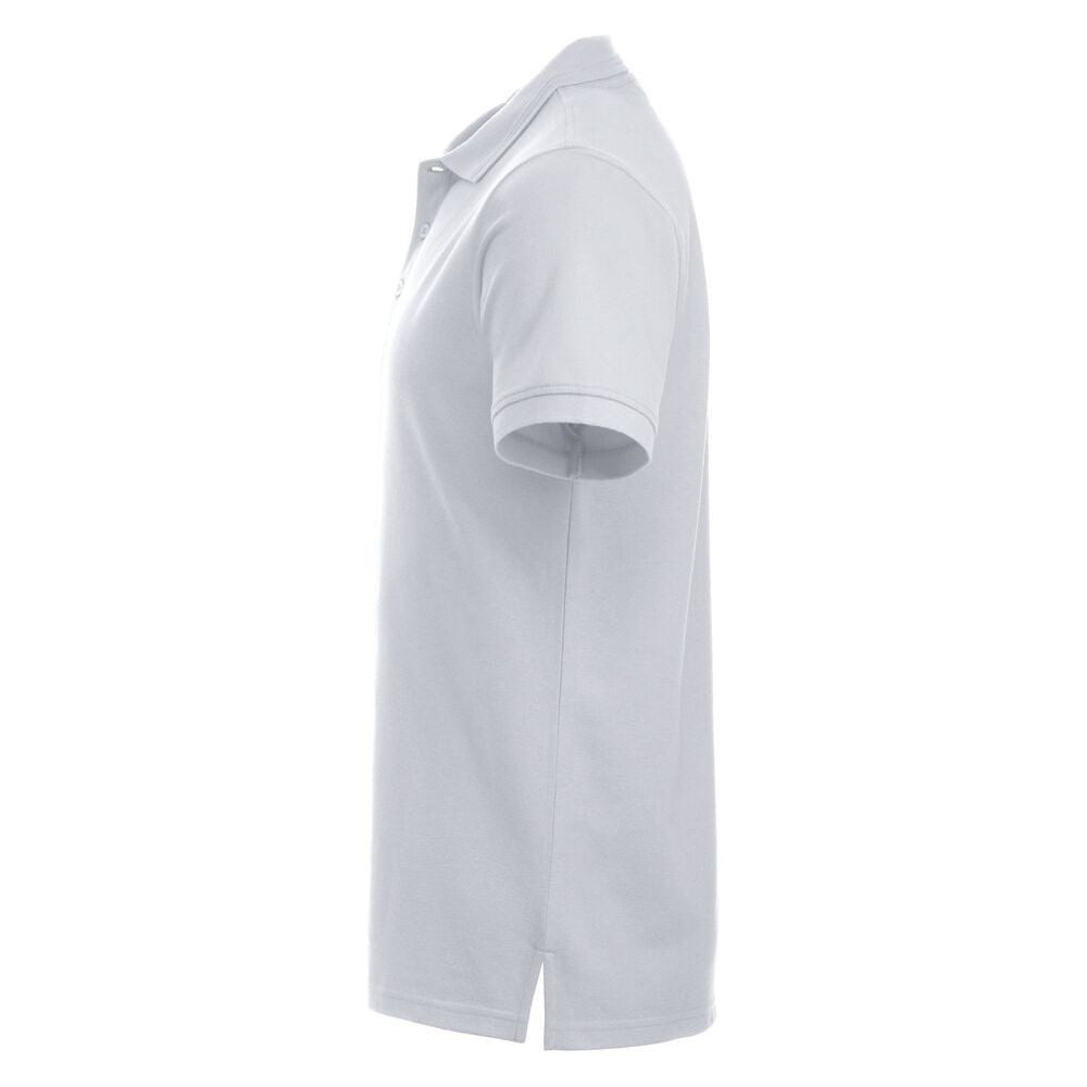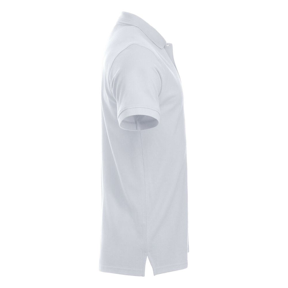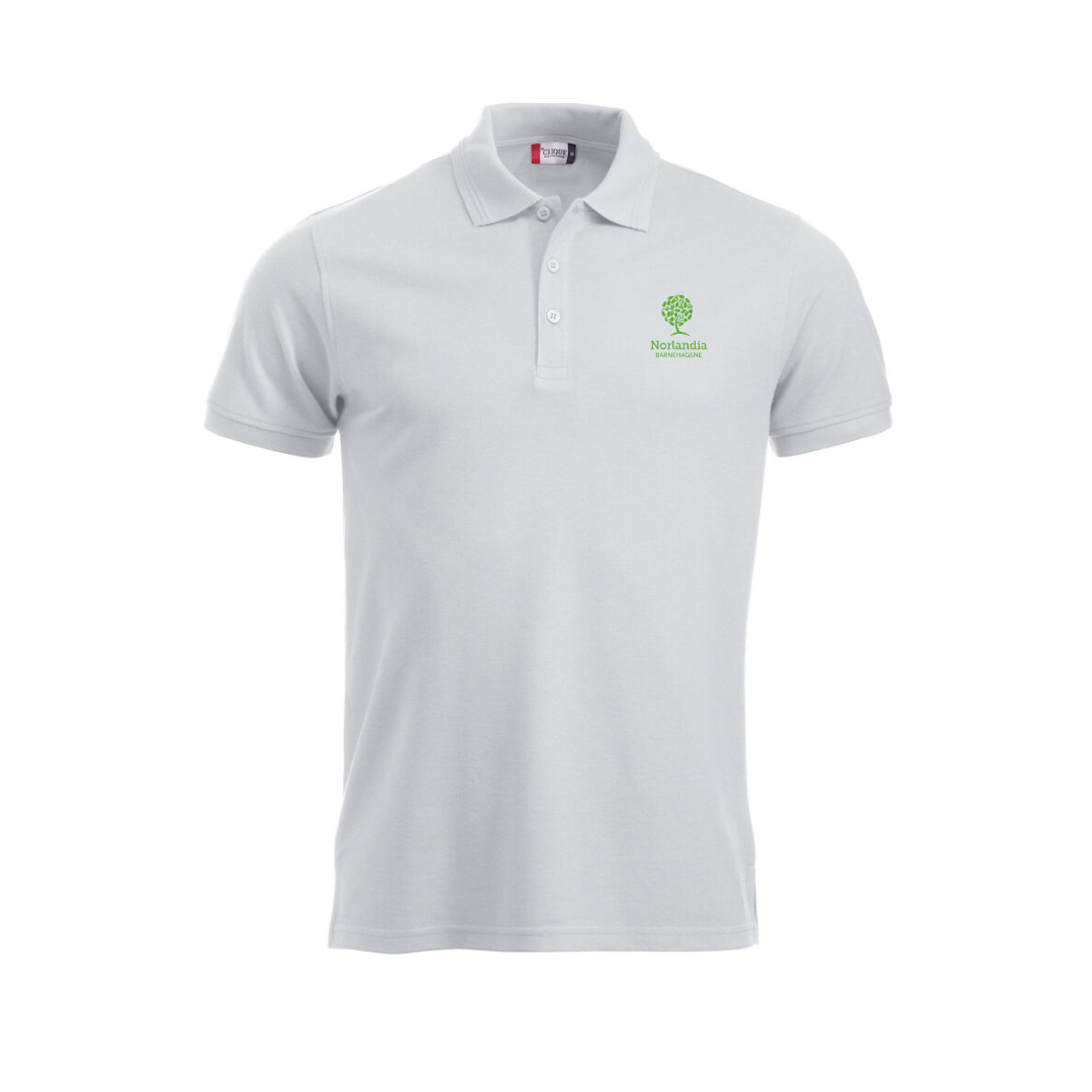 Pique med to jaquardstriper på kragen. Knappestolpe med tre knapper som går ton-i-ton og splitt i sidene.