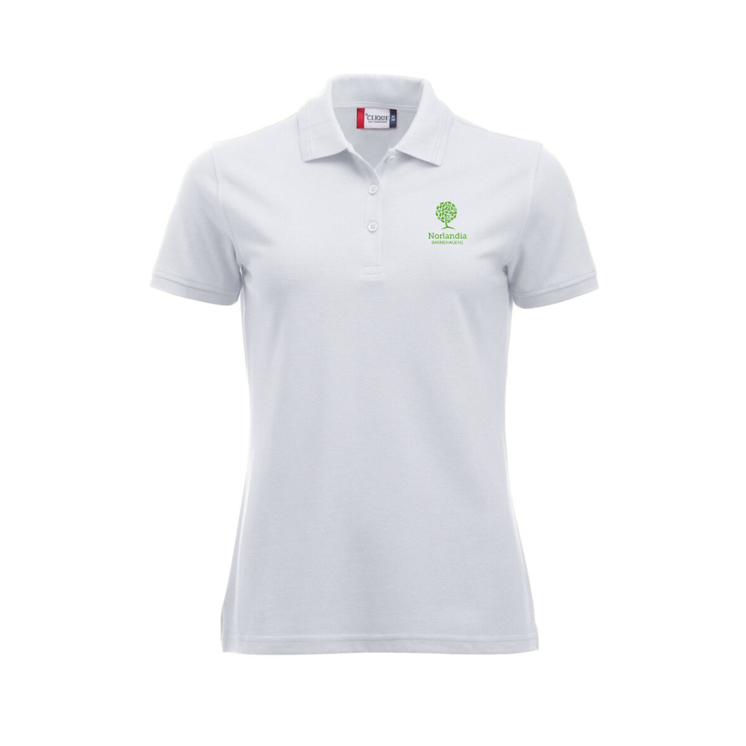Pique med to jaquardstriper på kragen. Knappestolpe med tre knapper som går ton-i-ton og splitt i sidene.