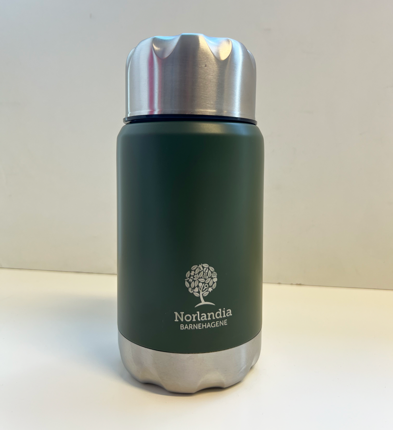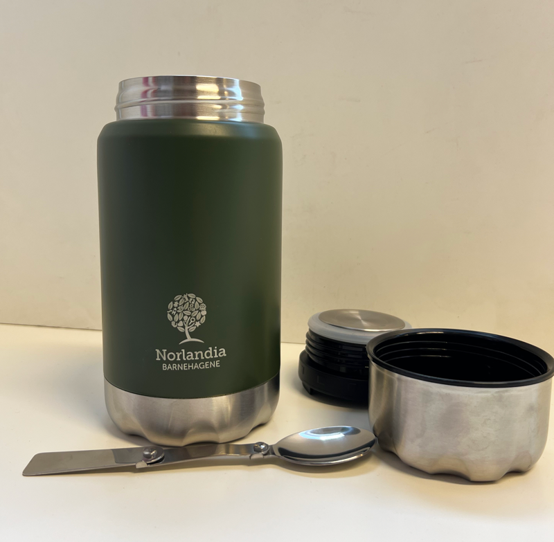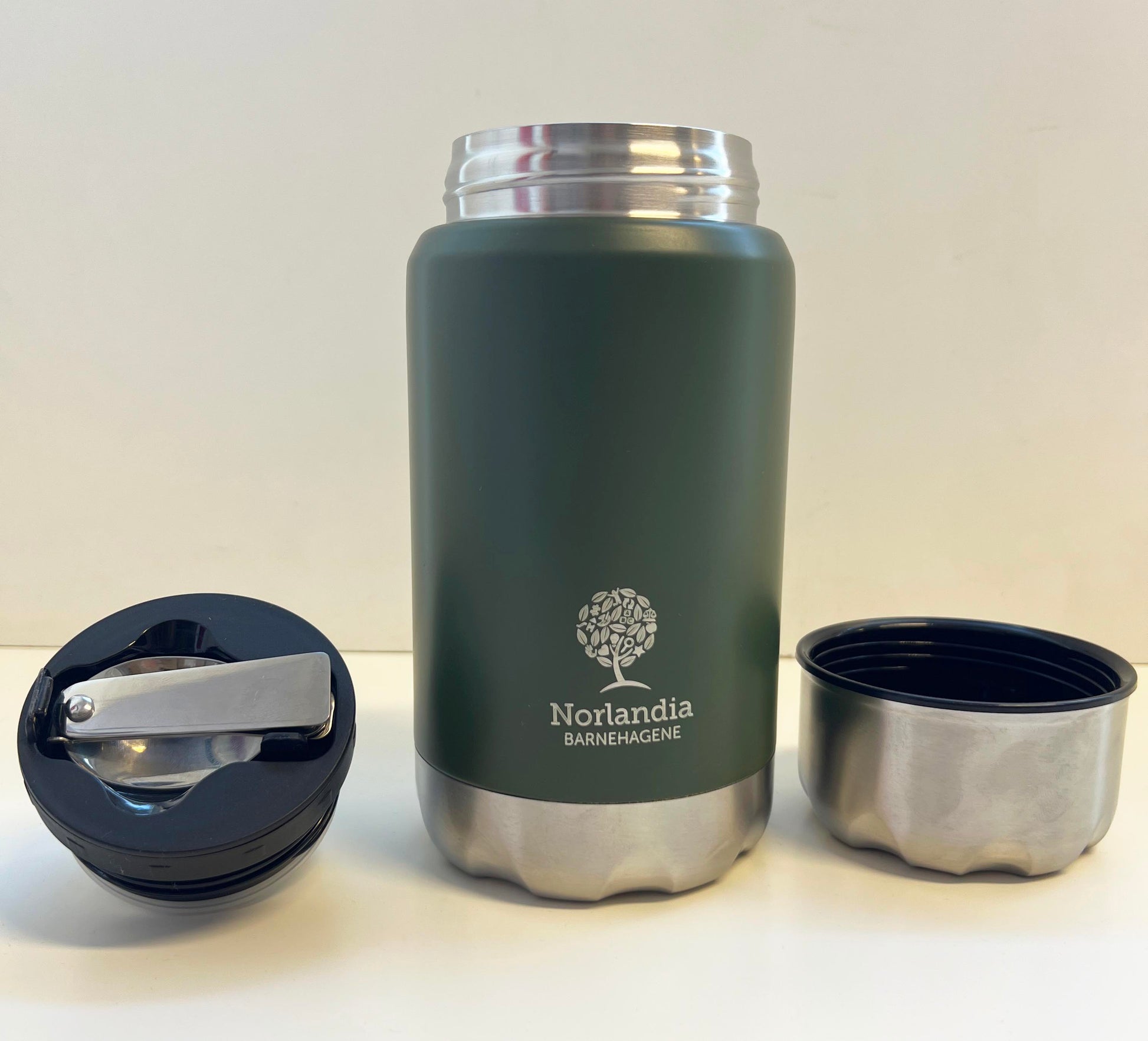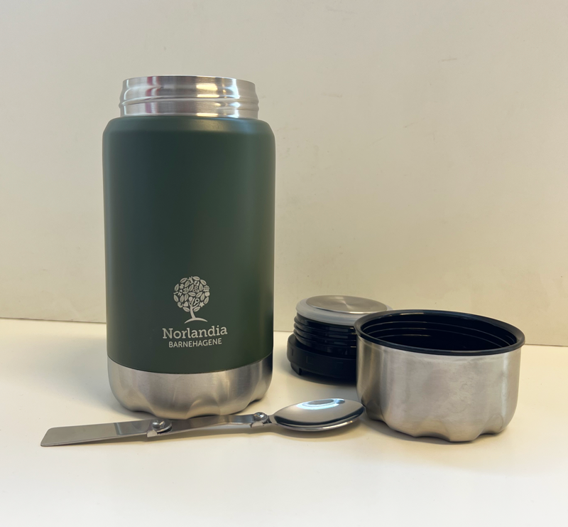 Dette er en hendig mattermos i stilig design med det lille ekstra. Det ytre lokket fungerer også som et krus/skål. Det indre lokket rommer en liten, sammenleggbar skje og kan også åpnes for å oppbevare tilbehør/krydder. Den store halsen gjør den enkel å fylle og rengjøre. Konstruksjon med doble vegger i rustfritt stål og kobberbelegg sørger for at maten holdes kald i 24 timer eller varm i 12 timer.