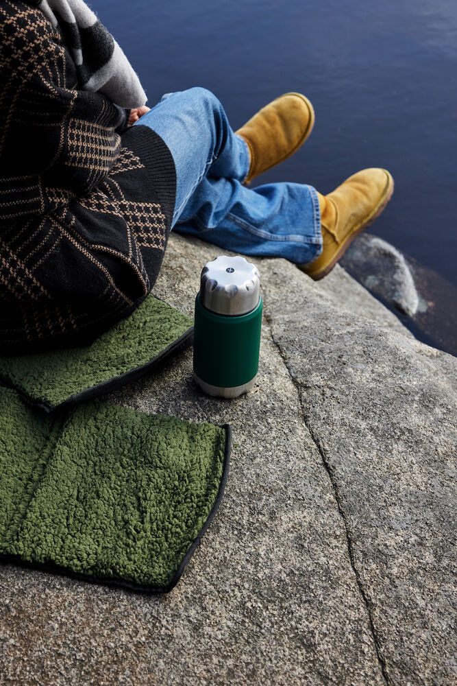 Lite og praktisk sitteunderlag med vannavvisende underside. Rulles enkelt opp og igjen med borrelås. Tar minimalt med plass når den er rullet sammen. Toppen er varm og myk ettersom den er laget av sherpastoff, en imitasjon av saueull.