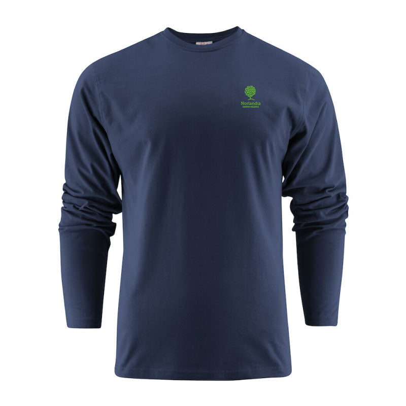 Eksklusiv t-skjorte med lang erm. Klassisk snitt og ribb på ermer og hals. Lycra i alle ribber. Forhåndskrympet.